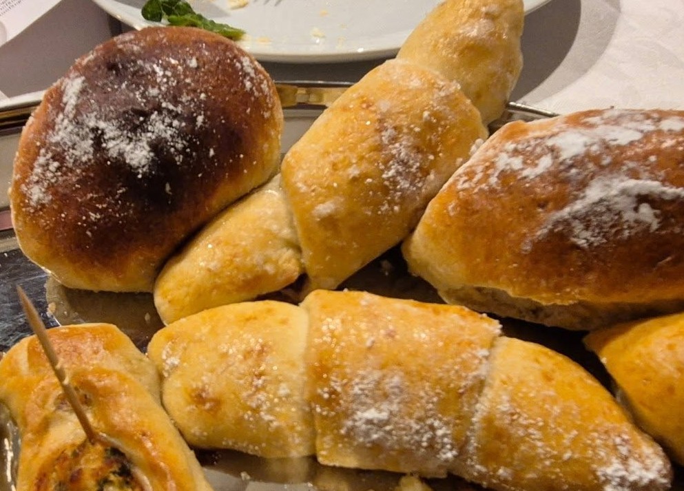 Bilder 2-4: Die Frauenschule setzte das erste kulinarische Highlight mit der Vorspeise - süßem und salzigem Gebäck aus den Herkunftsländern in Osteuropa und dem Nahen Osten. Die Frauenschule ist eine Initiative aus Versmold unter Leitung von Pfarrerin Anja Kepler. Sie hilft geflüchteten Frauen, sich im deutschen Alltag zurechtzufinden und sich gegenseitig Kraft zu geben. Gelungene Integration mit viel Wärme und Lebensfreude!