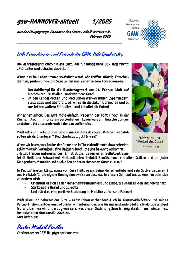 von Pastor Michael Fendler, Vorsitzender des GAW Hannover