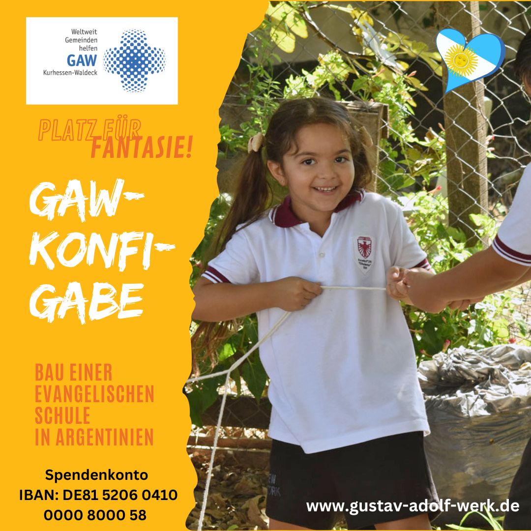 Exemplarisch für die zahlreichen Projekte des GAW stellen wir Ihnen die Konfirmandengabe vor, die wir als Jahresprojekte für 2025 gewählt haben. Die Konfirmandengabe ist eine Spendenaktion, mit der jedes Jahr Kinder und Jugendliche unterstützt werden. Die diesjährige Aktion steht unter dem Motto „Platz für Fantasie!“