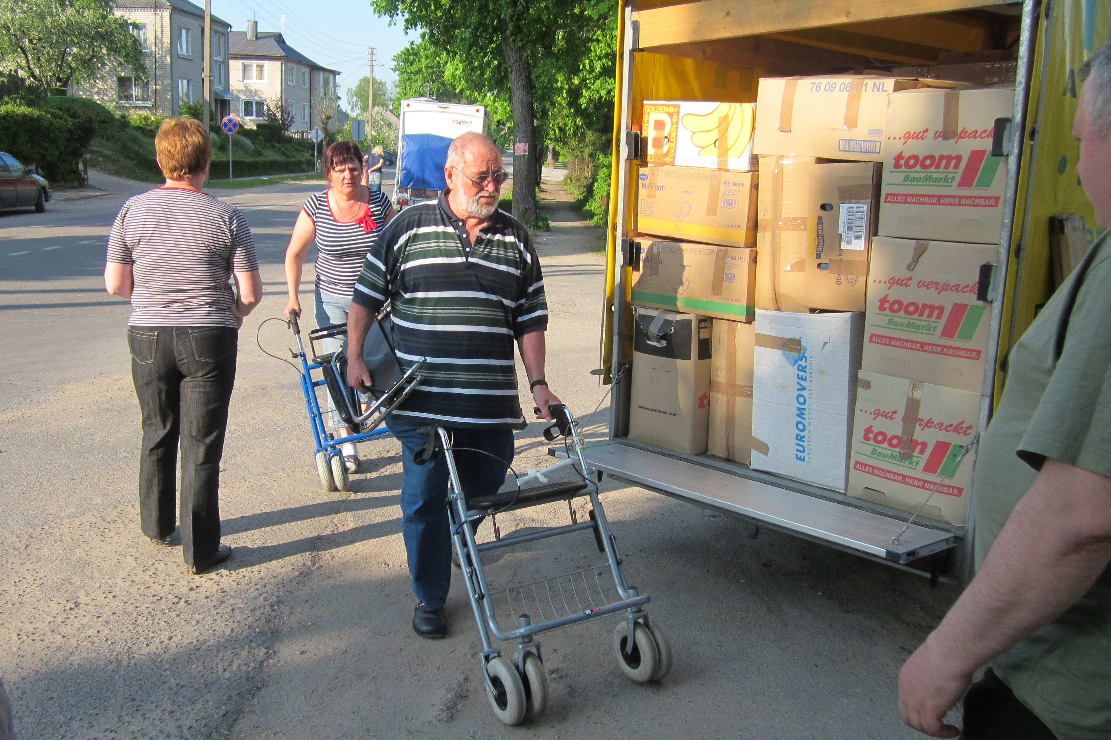 2015 schrieb Friedel Weber in seinem Reisebericht: „Der sehr herzliche Empfang rührte uns wie jedes Mal fast zu Tränen. Es war der komplette Kirchenvorstand zum Ausladen angetreten und so konnten die über 100 Kartons mit Bekleidung und Schuhen schnell in der Kirche verstaut werden.“ Der AWO Ortsverein hat mit Fahrzeugen und Geldspenden kräftig mitgeholfen, ebenso wie örtliche Geschäftsleute.