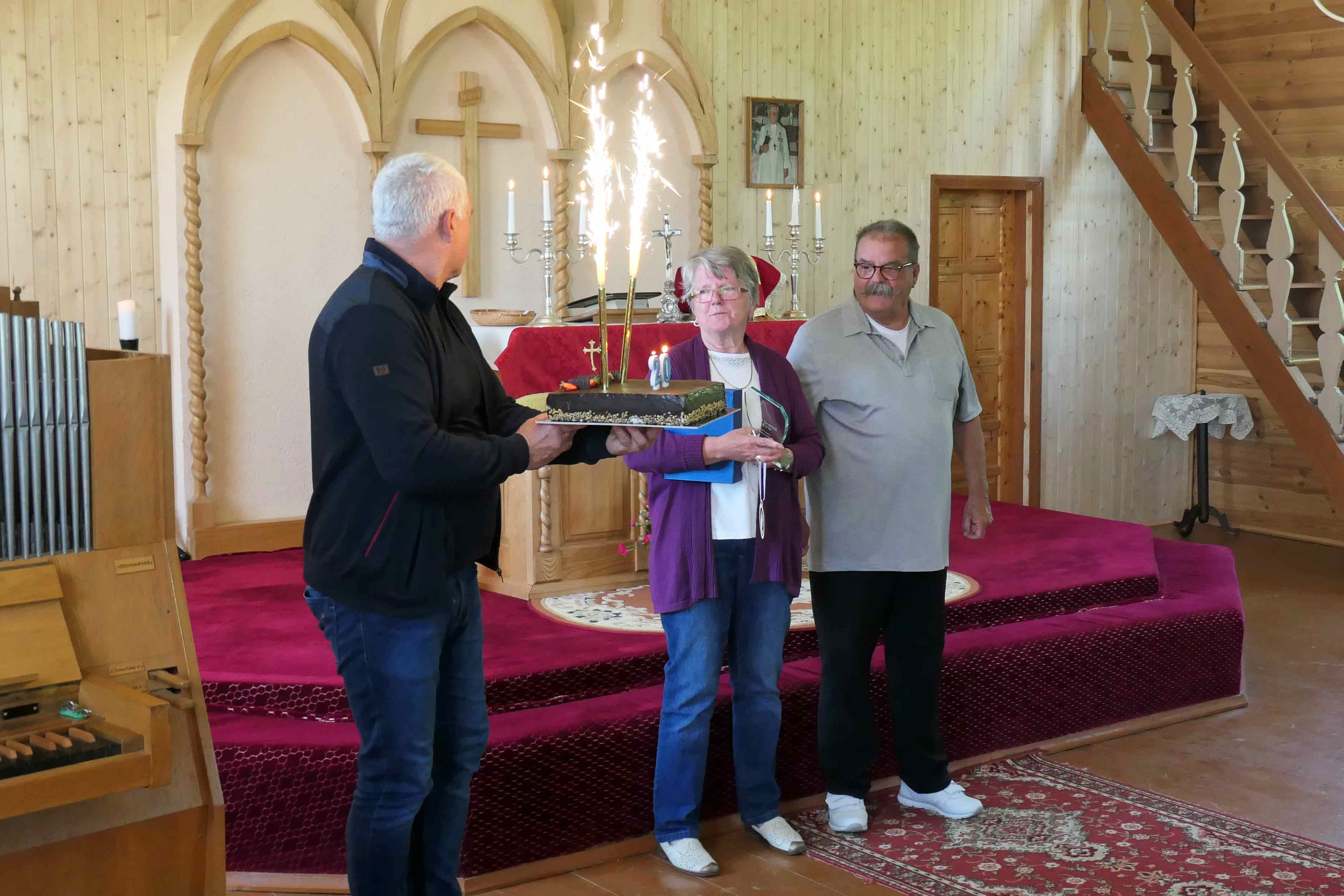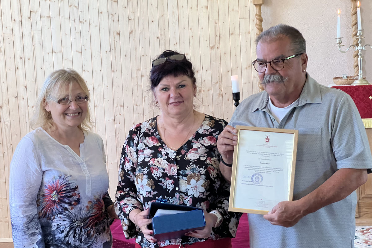 Und Pfarrer Edikas Šulcas meinte, sie hätten viel Hilfe und Unterstützung bekommen und hofften auch weiterhin darauf. „Dennoch sind wir jetzt auch in der Lage anderen Länder, wie der Ukraine, zu helfen.“ Karin und ihr Mann Friedel Weber bekamen für ihr Engagement einen von der Gemeinde selbst kreierten Pokal aus Glas überreicht. Für Pfarrer Micha-Steffen Stracke ist es keine Frage, dass die Partnerschaft weitergeht, „Wir werden uns auf jeden Fall weiterhin besuchen, und zwar gegenseitig.“ Denn der persönliche Kontakt sei oft wichtiger als die materielle Hilfe. Das beste sei es, von einander zu wissen und für einander zu beten, sagt Stracke.