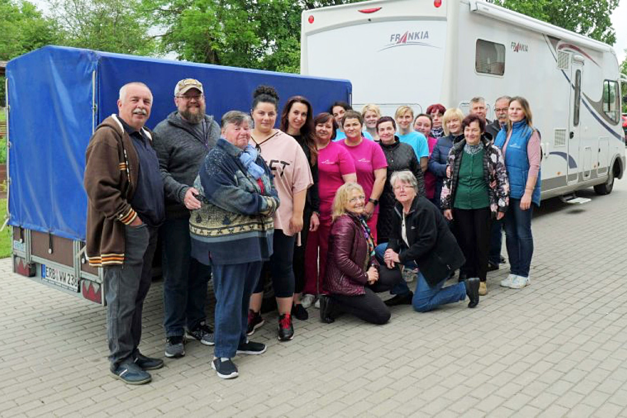 Die Fahrtroute führte von Vielbrunn nach Luckau im Spreewald, dann über die polnische Grenze nach Torun an der Weichsel, weiter nach Mikolajki in den Masuren und anschließend über die litauische Grenze nach Skaudvilé und weiteren Zielen. Beladen waren die Wagen voller Kisten mit Kleidern sowie Geh-Hilfen, Rollstühlen und Hygieneartikeln wie Windeln & Seife, die die Vielbrunner auch in ein Seniorenheim brachten.