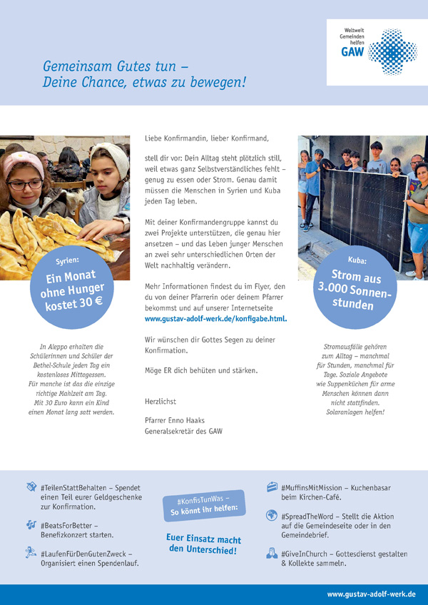 , Tel.: 0341.49062-15, E-Mail: jugendarbeit@gustav-adolf-werk.de
