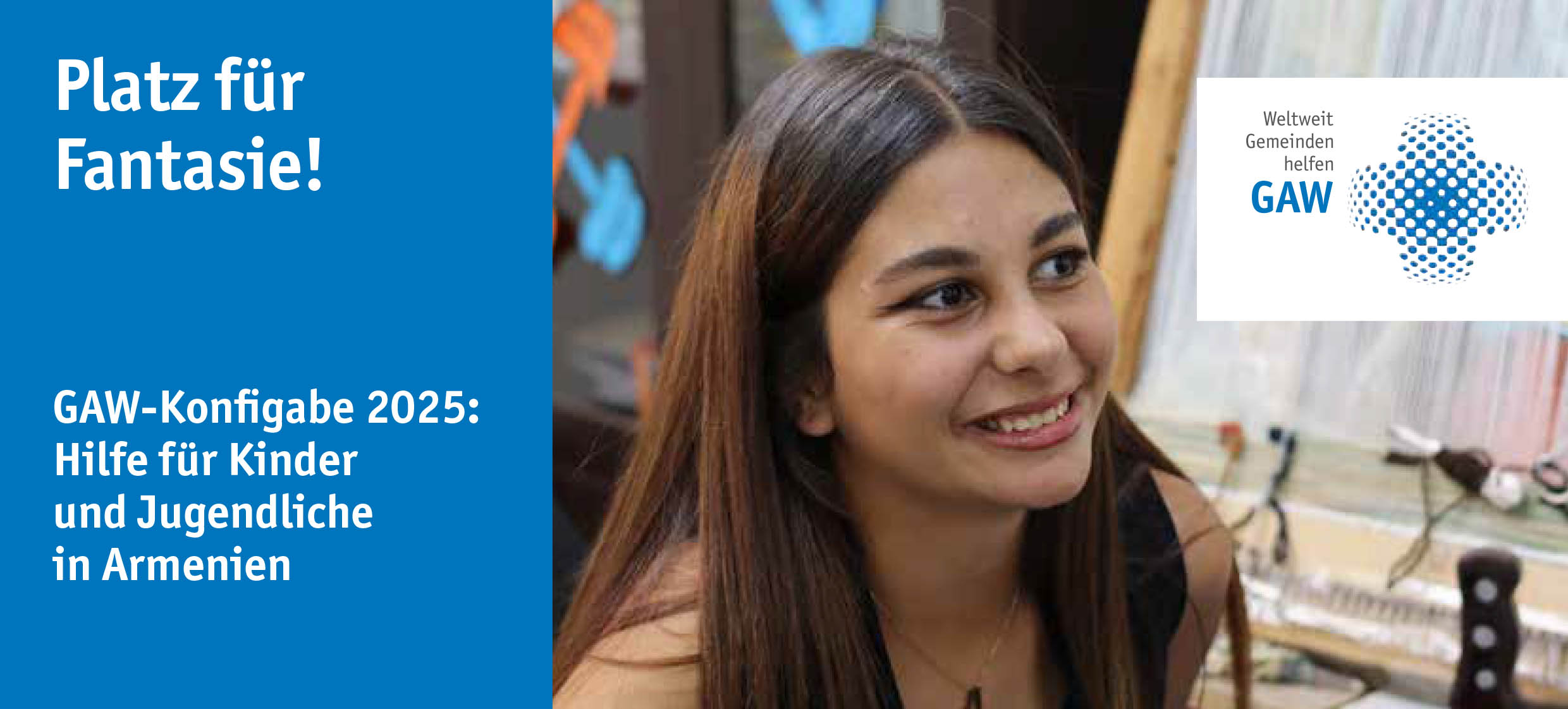 Die GAW-Konfirmandengabe ist eine Spendenaktion, mit der jedes Jahr benachteiligte Kinder und Jugendliche unterstützt werden. Die diesjährige Aktion haben wir unter das Motto „Platz für Fantasie!“ gestellt. Wir unterstützen die Kinder- und Jugendarbeit der Evangelischen Kirche in Armenien. Die Armut der Menschen in Armenien ist groß. Es gibt nicht genug Arbeit. Oft geht ein Elternteil in Ausland, um Geld zu verdienen. Viele Familien zerbrechen daran. Auch der Konflikt mit dem Nachbarland Aserbaidschan erschwert das Leben.