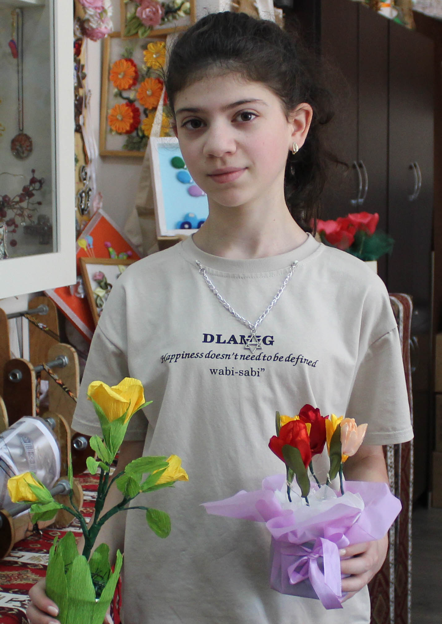 Eines der Mädchen, die regelmäßig in die DIY-Gruppe in Gyumri kommen, ist Nona (13).