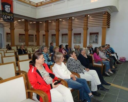 Auf unserer Rundreise ist Maribor ein weiterer Anlaufpunkt. Dort lernen wir Pfarrerin Vladimira Mesaric kennen. Vladimira Mesaric und Simona Prosic Filip sind die ersten ordinierten Pfarrerinnen der Evangelischen Kirche A.B. in Slowenien. Bei unserem Eintreffen ist Vladimira Mesaric gerade vom Dienst als Militärseelsorgerin aus der Kaserne zurückgekommen. Schnell werden im Pfarrhof ein Tisch mit erfrischenden Getränken und Gebäck sowie ein paar Bänke aufgebaut. Und schon können wir uns in einen sehr lebendigen Austausch vertiefen - Sprachbarrieren sind kaum bemerkbar. Ge-spannt nehmen wir die Ausführungen auf. Militärgeistliche werden vom Staat bezahlt. Die Gemeinde der Christuskirche in Maribor versieht die Pfarrerin sozusagen im Ehrenamt. Einen Schwerpunkt der Arbeit bilden die jährlichen Freizeiten für Kinder sowohl aus der Gemeinde als auch von Soldaten-familien. Diese kostenlosen Angebote sind inzwischen sehr gefragt, so dass viele Mitarbeitende gebraucht werden. Kinder ab dem vierten und Jugendliche bis zum fünfzehnten Lebensjahr können teilnehmen. Auf Unterstützung ist dieses Vorhaben allerdings angewiesen. Dafür ist das Gustav-Adolf-Werk eine ganz wichtige Adresse. Vladimira Mesaric erwähnt sehr betont die finanzielle Hilfe durch das GAW. In allen Gemeinden, die wir kennenlernen konnten, hat die Erwähnung des Gustav-Adolf-Werkes lächelnde Gesichter hervorgerufen. Dankbarkeit wird in Worte gefasst. Zu den markanten Gesichtern der evangelischen Kirche in Slowenien gehört in besonderer Weise Bischof Geza Filo. Ihn erleben wir im deutsch-slowenischen Gottesdienst in Ljubljana. Da die große „Primus Truber Kirche" gerade renoviert wird, versammeln wir uns im Gemeindehaus. Dort reihen wir uns in die Gemeinde ein. Im Anschluss an den Gottesdienst lädt uns Bischof Filo zum Kirchenkaffee ein. Jetzt haben wir Gelegenheit, Fragen zu stellen und Antworten aus berufenem Mund zu bekommen. Nur knapp ein Prozent der zwei Millionen Einwohner Sloweniens ist evangelisch. Die Evangelischen sind eine Minderheit. Die Kirche habe, obwohl sie klein ist, eine sehr gute Position im Land. Über die wechselvolle Geschichte des Protestantismus berichtet Bischof Filo. Dabei fällt immer wieder der Name Primus Truber. Slowenien würde es ohne den Reformator Primus Truber (1508 – 1586) wohl nicht geben. Er prägte den Namen „Slowenien" und war der Begründer der evangelischen Kirche in Slowenien, so erfahren wir von Bischof Filo. Überall im Land finden sich Straßen oder Plätze, die seinen Namen tragen. In der Hauptstadt steht ein großes Truber-Denkmal. Als einziges Land in Europa ist in Slowenien der 31. Oktober ein staatlicher Feiertag. Jedes Jahr findet ein politi-scher Staatsakt im Parlament statt, mit Ausnahme des vergangenen Jahres. Am Reformationstag 2017 wurde ein Gottesdienst aus der „Primus Truber Kirche" in Ljubljana vom Fernsehen übertragen. Die Evangelische Kirche A.B. in Slowenien hat knapp 10 000 Mitglieder. Die Gemeindeglieder in den 14 Gemeinden - davon liegen die meisten in der Prekmurje- werden von 6 Pfarrerinnen und 6 Pfarrern betreut.
