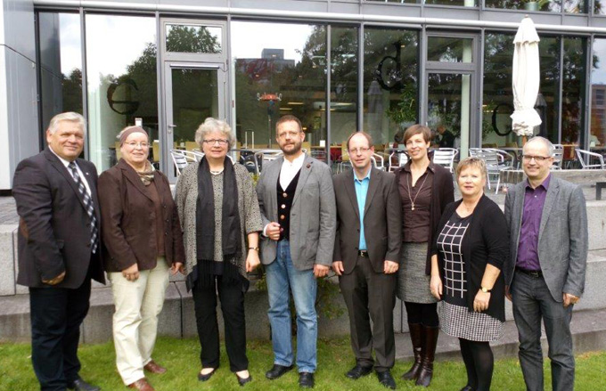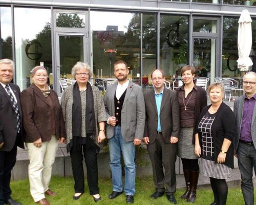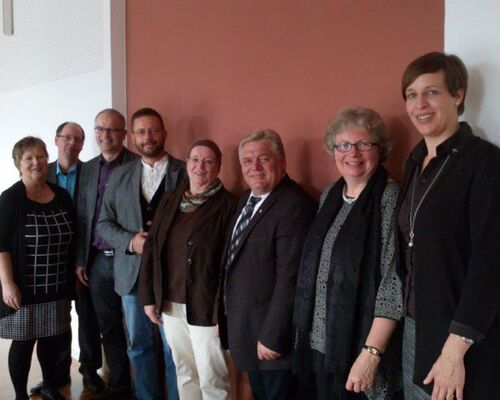Bildunterschrift: Bischof Eichholz (l) mit Vorstand (v.l. Kany, Krause, Henning, Gerhold, Keller-Stenzel, Rühl, Dilger es fehlt: Emde) Foto: Hertrampf
