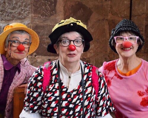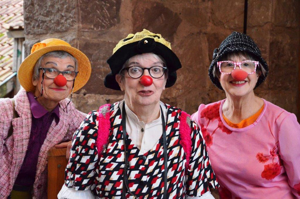 Bevor der erste Gang serviert und die erste Tischrede gehalten wurde, erfreuten sozusagen als Vorspeise die „Glaubensfrüchtchen" die Festgesellschaft: drei Clowninnen in Aktion – ein Augen- und Ohrenschmaus.