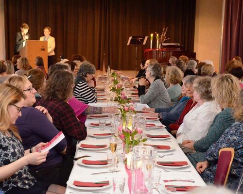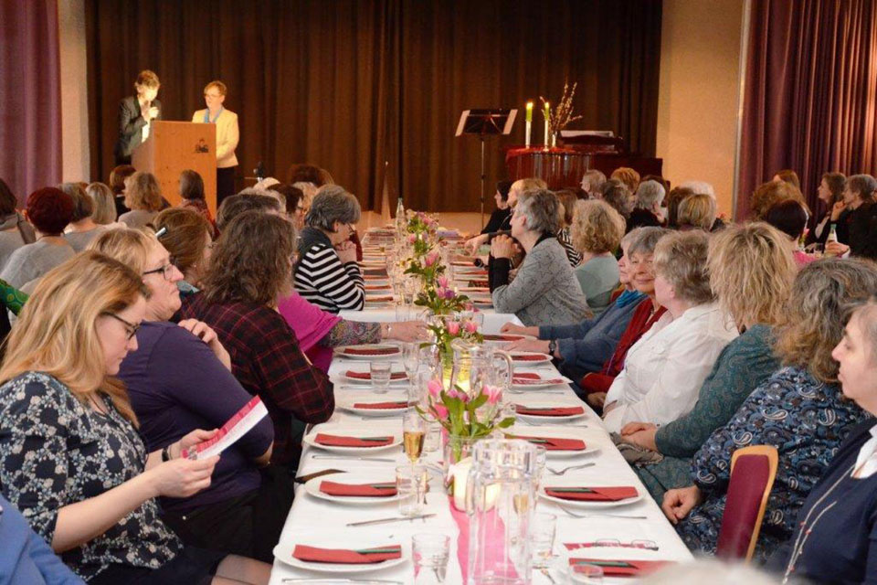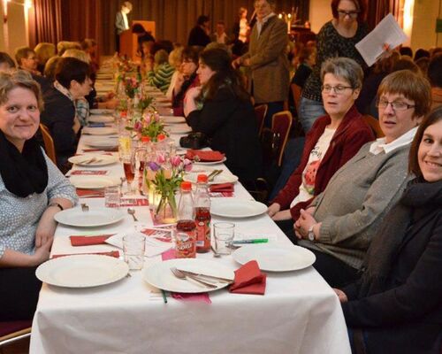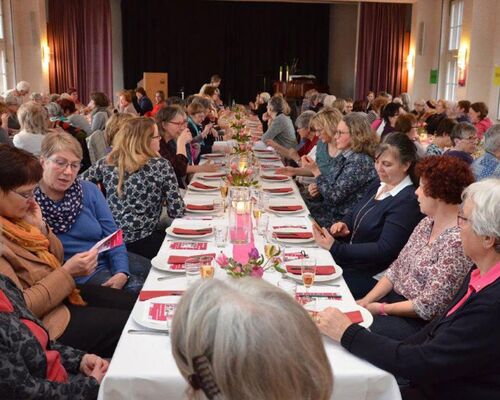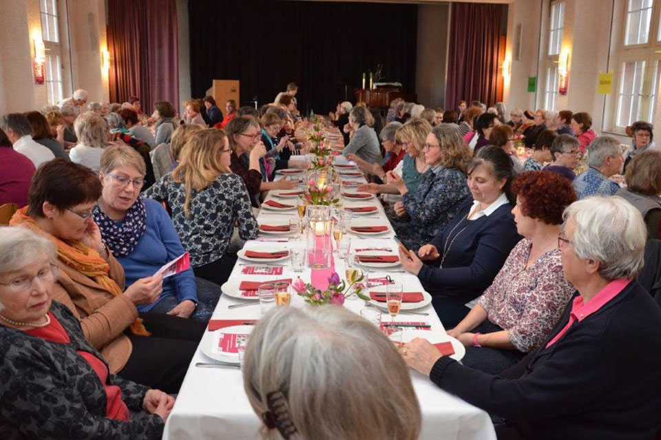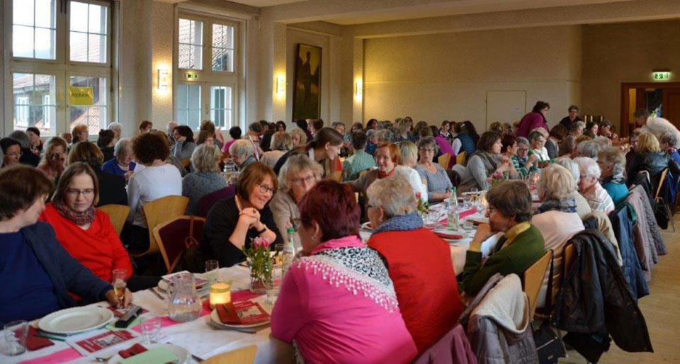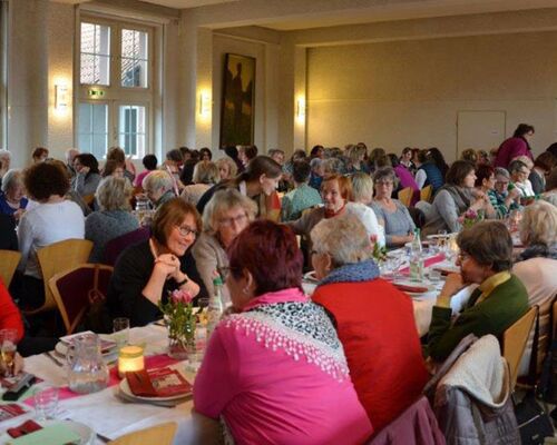 Zu einem festlichen Abendessen mit Austausch zur Zukunft von Religion und Kirche haben sich am 10. März auf Burg Ludwigstein 120 Frauen getroffen.