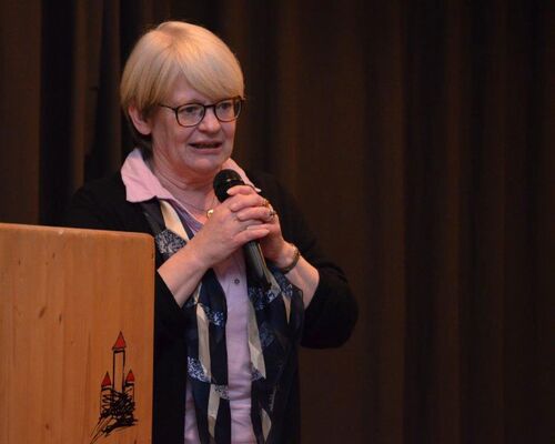 Es folgte eine dritte Tischrede. Generaldirektorin Wanda Falk berichtete über Veränderungen in Polen seit 1989: in der Politik, in den Schulen oder auf dem Arbeitsmarkt. Wanda Falk zeigte auf, welche Veränderungen in Polen auftreten, wenn Ärzte oder Pflegepersonal in ihrem Heimatland keine Zukunft mehr sehen und ins Ausland abwandern. Zwischen 200 000 und 500 000 Frauen arbeiten im Ausland als Pflegekräfte. Die Folgen für die zurückgebliebenen Kinder oder alte Menschen seien katastrophal. Mit großer Dankbarkeit erwähnte Wanda Falk in diesem Zusammenhang die finanzielle Unterstützung durch die Frauenarbeit im Gustav-Adolf-Werk. Dank dieser Hilfe konnte das Projekt „Mobile Schule" für Eurowaisen, Kinder von Arbeitsmigranten, durchgeführt werden. Mit gespannter Aufmerksamkeit hörten die Frauen zu, als Wanda Falk ihre Tischrede in Deutsch vortrug.