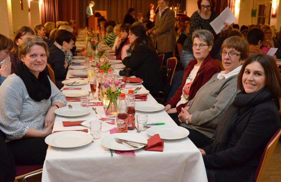 Zum zweiten Mal wurde in Zusammenarbeit des Kirchenkreises Witzenhausen, der Frauenarbeit im Gustav-Adolf-Werk, dem Referat der Erwachsenenbildung, Frauenarbeit in der EKKW und der Evangelischen Frauenarbeit im Kirchenkreis Witzenhausen in den nördlichsten Zipfel der Landeskirche eingeladen. Das Interesse am Austausch zur Zukunft von Religion und Kirche unter dem Thema „Mein Gott, wie haben wir uns verändert" stieß auf sehr großes Interesse. Das lag zum Einen an der Faszination, die von der Veranstaltung „Frauenmahl" ausgeht, und zum anderen an den Referentinnen, die mit ihren Tischreden ganz unterschiedliche Facetten einer veränderten Kirche und Gesellschaft aufzeigten: Dr. Margot Käßmann, Reformationsbotschafterin der EKD, Wanda Falk, Generaldirektorin der Diakonie der Evangelischen Kirche A.B. in Polen, Angela Fischer, Bürgermeisterin in Witzen-hausen, Karin Weinsberg, Sozialarbeiterin und Sandra Parker für das diakonische Projekt „Wohnen für Hilfe".