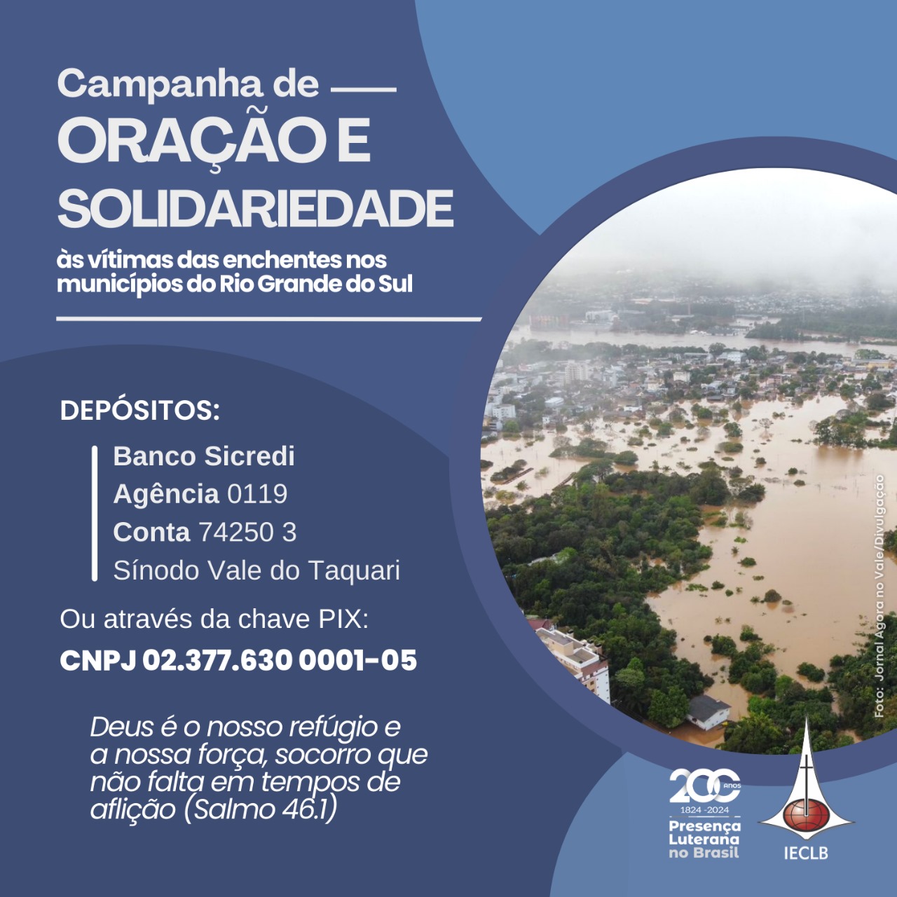 Inzwischen haben die Kirchgemeinden mit der ersten Bilanz der Schäden begonnen. Verschiedene kirchliche Gruppen und Arbeitsbereiche zeigen ihre Solidarität mit Betroffenen und wollen beim Wiederaufbau helfen. Die evangelische Synode im Taquari-Tal hat einen Spendenaufruf gestartet. Für eine eventuelle Hilfe der betroffenen Gemeinden wird das GAW die ersten Bestandsaufnahmen abwarten.