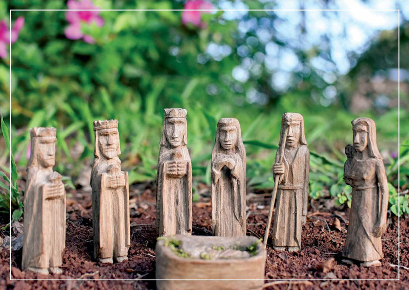 Diese Holzkrippe wurde von Vicente Ramos geschnitzt, einem Kunsthandwerker aus der indigenen Gemeinschaft der Mbya-Guaraní. Die evangelische Stiftung Hora de Obrar begleitet diese indigene Gemeinschaft, um ihre Selbstbestimmung zu stärken – durch bessere Infrastruktur und Bildung, Zugang zu Gesundheit und Recht sowie durch Unterstützung beim Verkauf von handgefertigten und landwirtschaftlichen Produkten. Das GAW fördert die Arbeit der Stiftung mit indigenen Gemeinschaften.