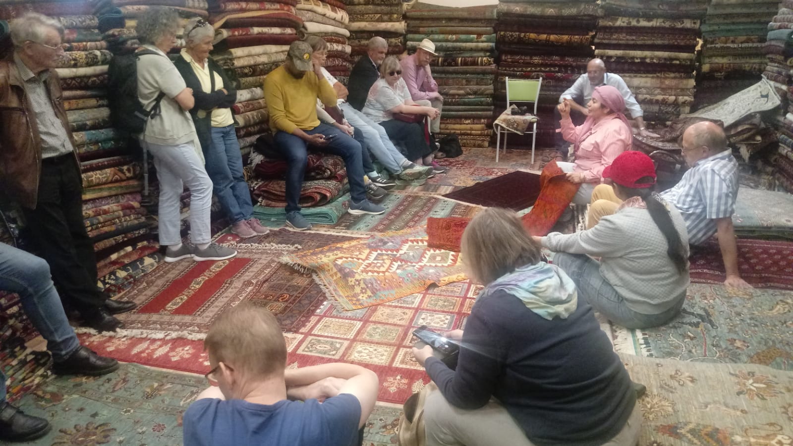 Die Samarkander Seidenteppichmanufaktur wird von einer Familie aus Afghanistan (und mit turkmenischen Wurzeln) betrieben, die sich ganz der Bewahrung dieses traditionellen Handwerks verschrieben hat. Mit grosser Offenheit wird den Besuchern den Prozess des Teppichknüpfens vorgestellt- und anschliessend sind die Besucher zum Kauf eingeladen. Teppiche haben wir nicht gekauft, aber der eine oder andere Seidenschal wird künftig in Deutschland getragen werden.
